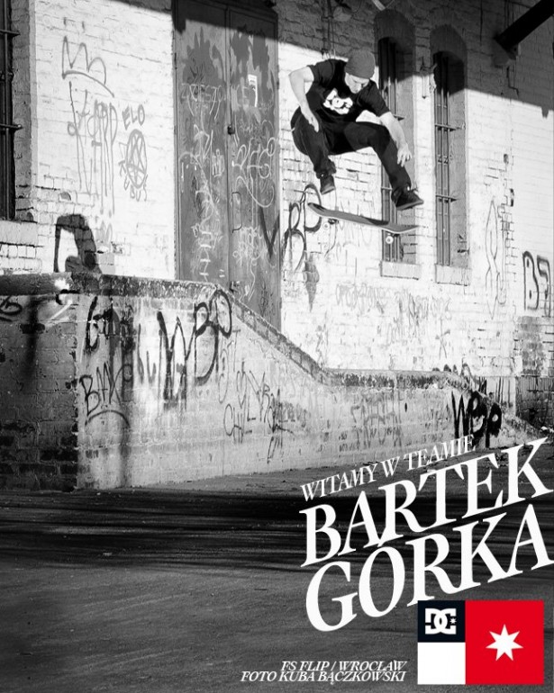 Nie tylko światowy team DC Shoes wzmacnia swoje skateboardowe szeregi. Także i w Polsce do ekipy DC Skateboarding – Gutek, Tomek Kotrych, Mazi i Tomeczek Ziółkowski – dołączył nowy załogant – Bartek Górka z Wrocławia. Cały polski team DC zobaczymy już 24ego marca na pierwszej imprezie z cyklu My DC Crew otwierającej nowy Kamuflage Skatepark, a my już teraz oficjalnie witamy w Bartka Górkę w teamie DC Shoes i czekamy na powitalne promo video!
